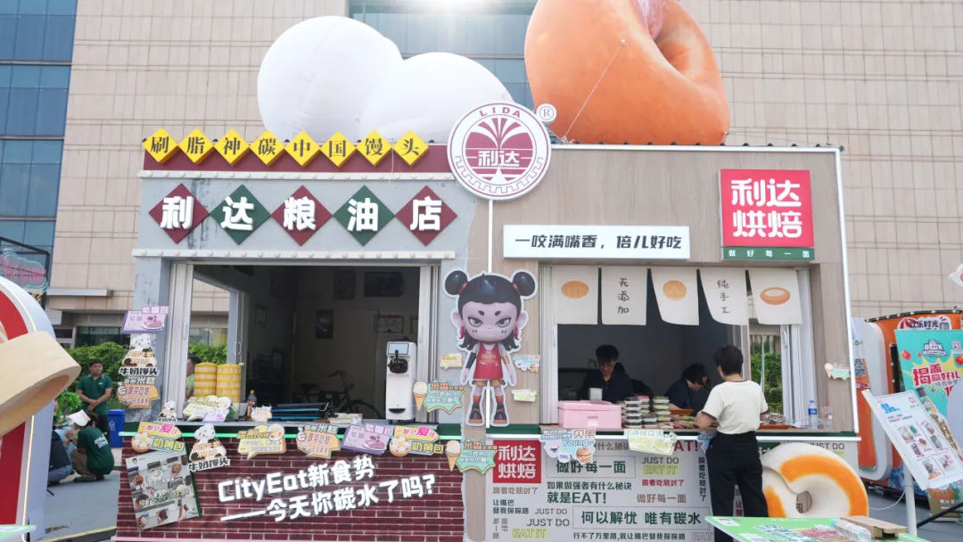 展區(qū)主要展示利達(dá)主食與利達(dá)烘焙兩個(gè)系列產(chǎn)品,結(jié)合年輕主題,搭建了以“饅頭-中國(guó)刷脂神器”為主題的互動(dòng)打卡點(diǎn),設(shè)立打卡贈(zèng)送“漆畫(huà)扇”活動(dòng),更好地向年輕群體宣傳了利達(dá)品牌,打破消費(fèi)者對(duì)利達(dá)的固有認(rèn)知,和年輕的消費(fèi)群體展開(kāi)友好的交流,為消費(fèi)者提供多“young”性的優(yōu)質(zhì)碳水選擇。此外,結(jié)合夜市消費(fèi)場(chǎng)景,新研發(fā)的利達(dá)花樣主食土豆、紫薯、香煎肉花卷、利達(dá)鍋巴菜貝果等,一經(jīng)推出,立即成為市集的網(wǎng)紅產(chǎn)品,深受消費(fèi)者喜愛(ài)。