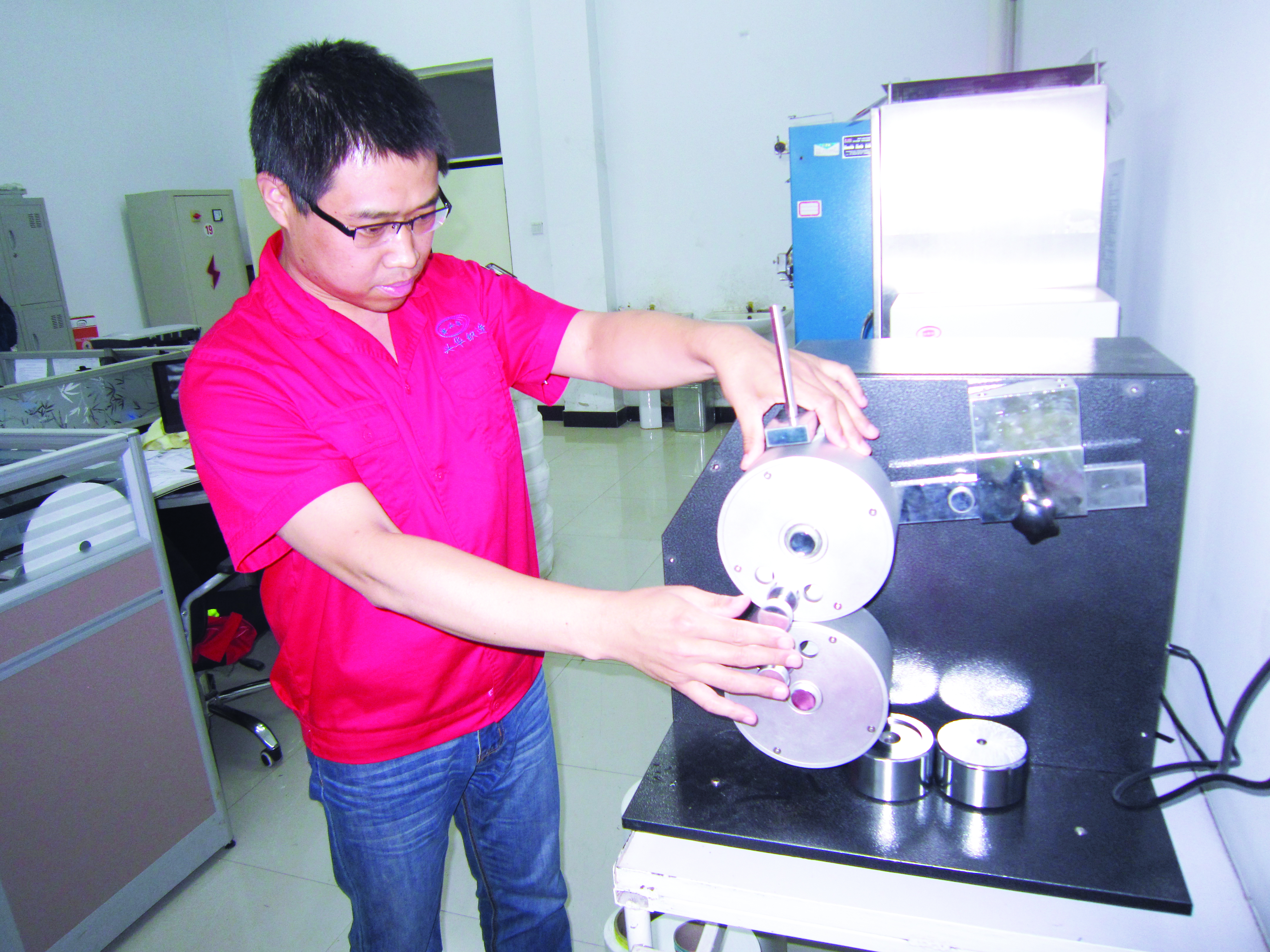 質(zhì)量是企業(yè)的生存之本 是企業(yè)的生命線,是企業(yè)生存和發(fā)展的根本命脈。工作中,他及時(shí)發(fā)現(xiàn)問(wèn)題所在,搞清產(chǎn)品,掌握細(xì)節(jié),做到了腿勤,手勤,眼勤。生產(chǎn)是動(dòng)態(tài)的,他明白只有緊貼生產(chǎn),到生產(chǎn)中去,才能抓住質(zhì)檢工作重點(diǎn),所以他的工作地點(diǎn)和時(shí)間多半都在車間班組。公司對(duì)胚帶到成品共涉及到27項(xiàng)檢驗(yàn)項(xiàng)目,其中,最關(guān)鍵的是對(duì)搭扣帶寬度的測(cè)量,誤差均為±1mm,品級(jí)越高誤差要求越小,甚至是±0.5mm。這項(xiàng)工作需要足夠的韌勁和耐心,每次測(cè)量產(chǎn)品,他都仔細(xì)核對(duì),不僅使用鋼尺測(cè)量至少5次,還得用千分尺測(cè)量至少3次。多年以來(lái),興華公司尼龍搭扣產(chǎn)品成品合格率達(dá)到98%以上。